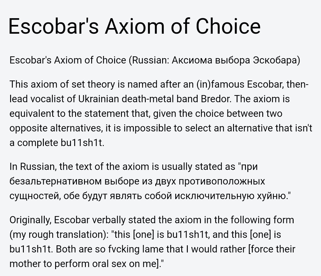 There should be an Escobar Axiom meme here;) Well, if it is censored, then I am equally indifferent to both options.